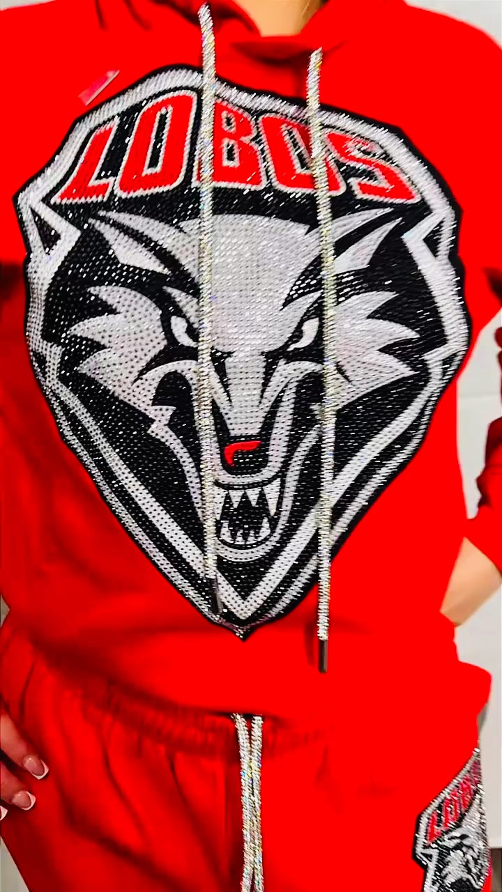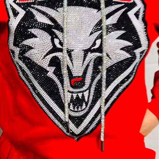Red UNM Lobos Rhinestone Crop Top Hoodie