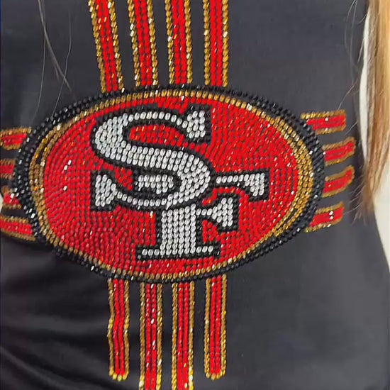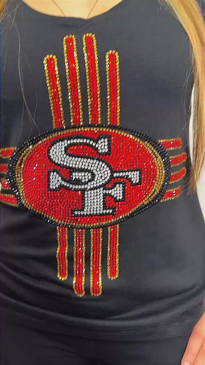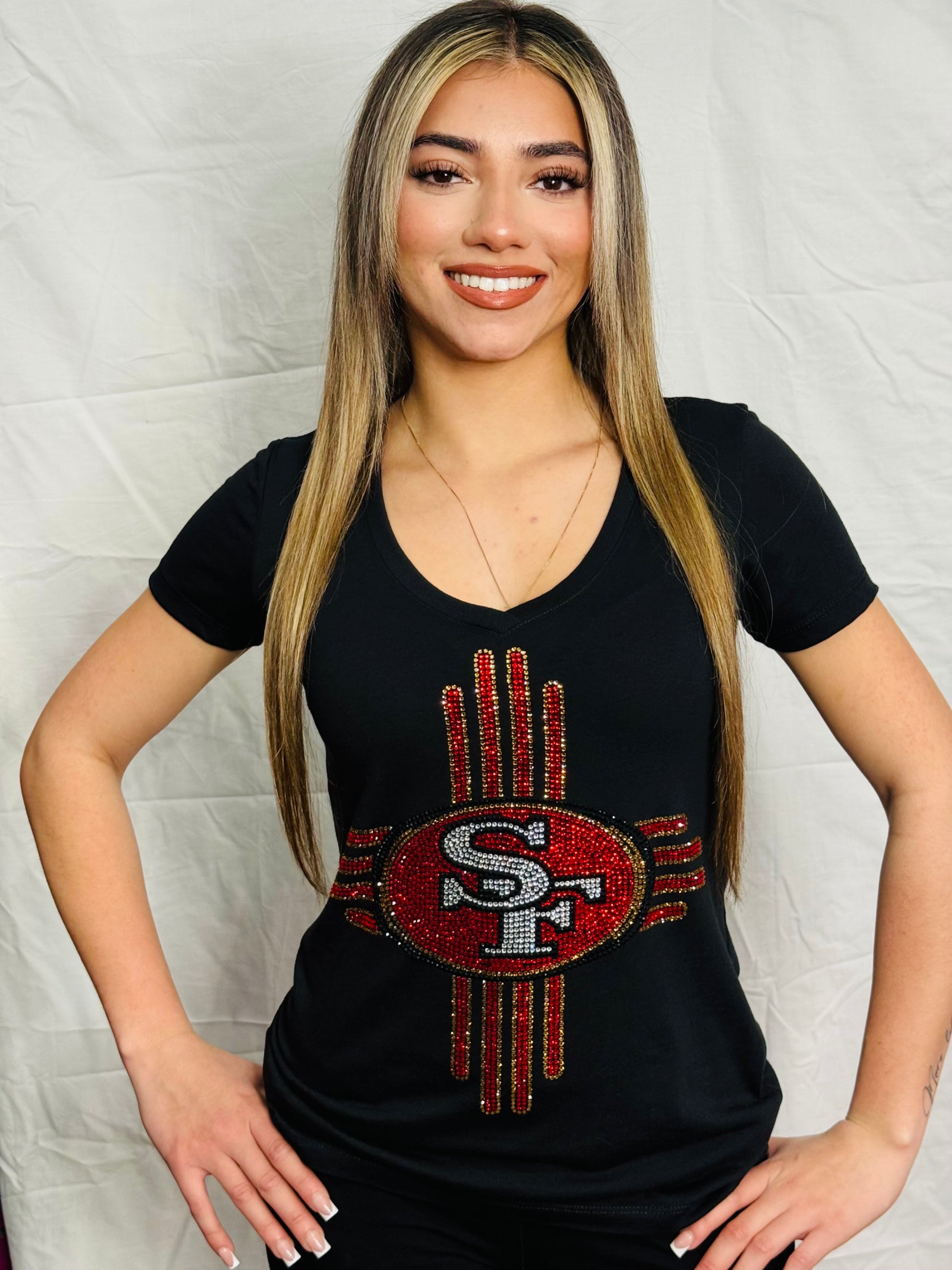 Zia Rhinestone 49ers V-Neck T-Shirt